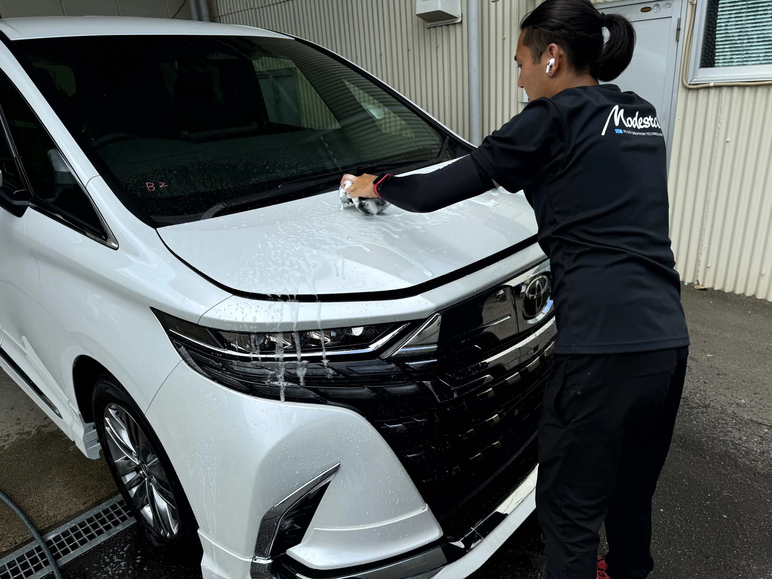 想いを込めて車を磨きます。